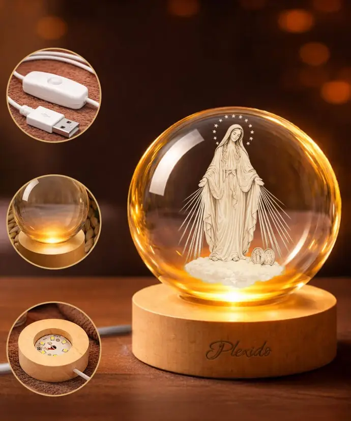 Diese wunderschöne Kristallkugel mit 6 cm Durchmesser ist eine elegante Dekoration und eine einzigartige Geschenkidee. Zusammen mit einem Holzsockel im gleichen Durchmesser (6 cm) ergibt sie ein harmonisches, ästhetisch ansprechendes Ensemble, das auf Regal, Schreibtisch oder Nachttisch gleichermaßen gut zur Geltung kommt. Dezente LED-Beleuchtung hebt das dreidimensionale Muster im Inneren der Kugel hervor und erzeugt so einen zauberhaften Lichteffekt – sowohl tagsüber als auch nachts.