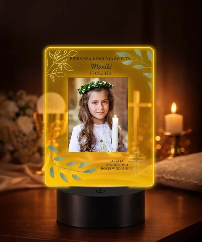 3D-Plexido-LED-Lampe als Souvenir zur Kommunion mit Foto