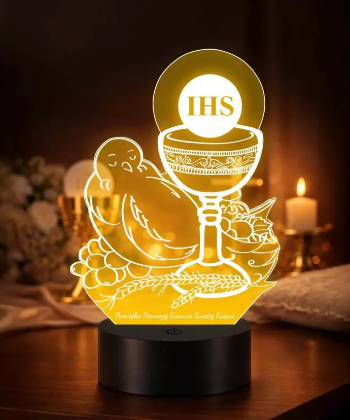 Souvenir Erstkommunion IHS Kelch Taube LED Lampe Plexido