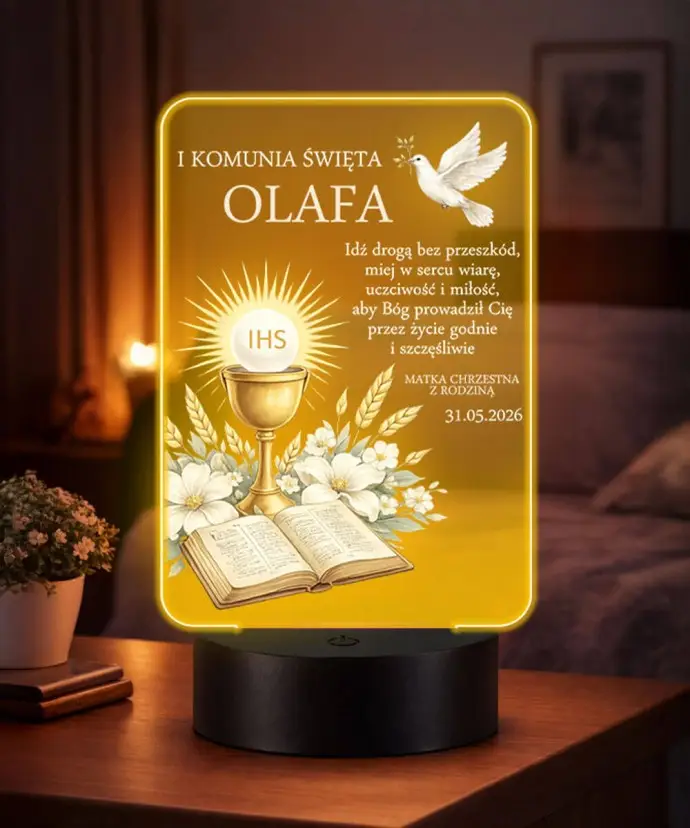 Eine personalisierte Kommunionslampe von Plexido ist eine einzigartige Geschenkidee zur Erstkommunion. Sie ist ein elegantes und symbolträchtiges Erinnerungsstück, das das Kind viele Jahre begleiten wird.