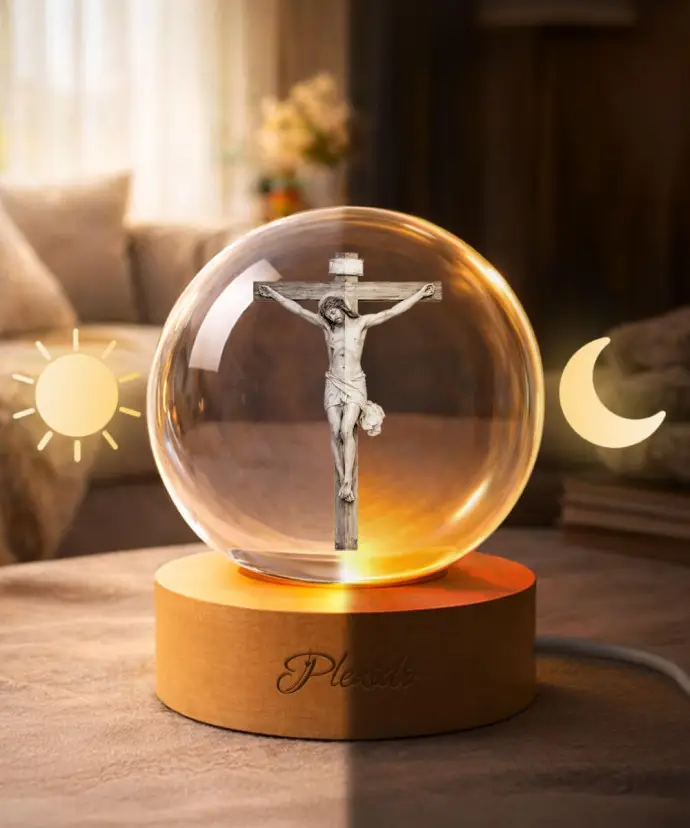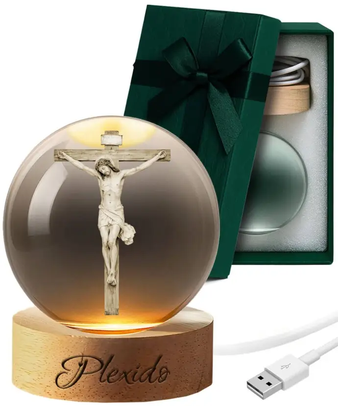 3D Crystal Ball Jesus on the Cross LED Base
