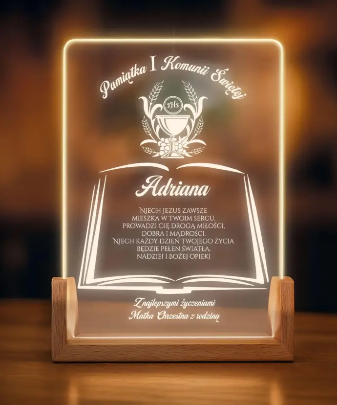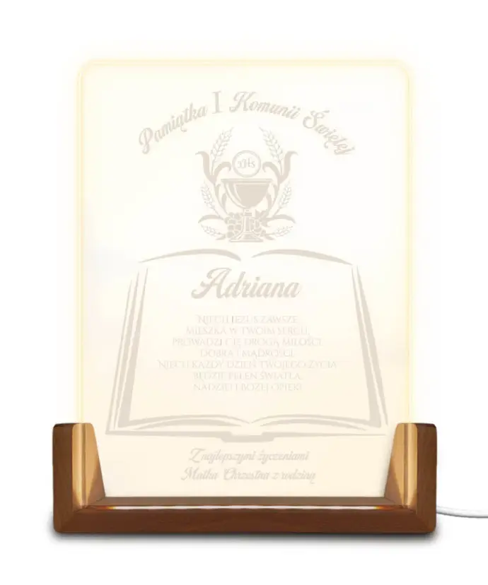 A personalized LED First Communion lamp is a unique keepsake that combines elegance, light, and emotion . Subtle LED illumination combined with personalized engraving creates an eye-catching effect and adds a unique touch.