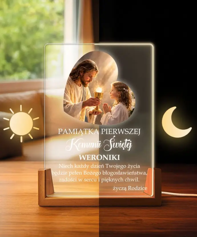 A personalized LED First Communion lamp is a unique keepsake that combines elegance, light, and emotion . Subtle LED illumination combined with personalized engraving creates an eye-catching effect and adds a unique touch.