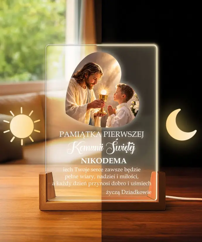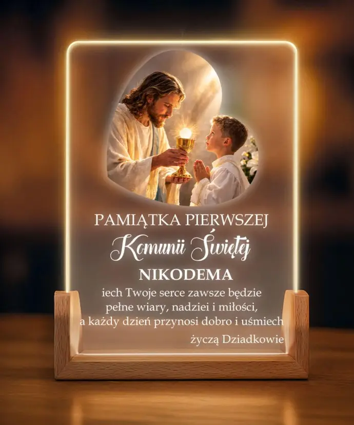 A personalized LED First Communion lamp is a unique keepsake that combines elegance, light, and emotion . Subtle LED illumination combined with personalized engraving creates an eye-catching effect and adds a unique touch.