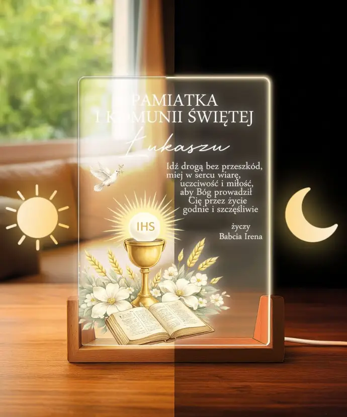 A personalized LED First Communion lamp is a unique keepsake that combines elegance, light, and emotion . Subtle LED illumination combined with personalized engraving creates an eye-catching effect and adds a unique touch.