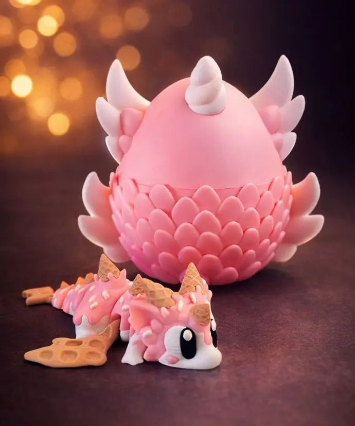 Smok Wafelkowy z Jajkiem Figurka 3D Ruchoma Kolekcjonerska
