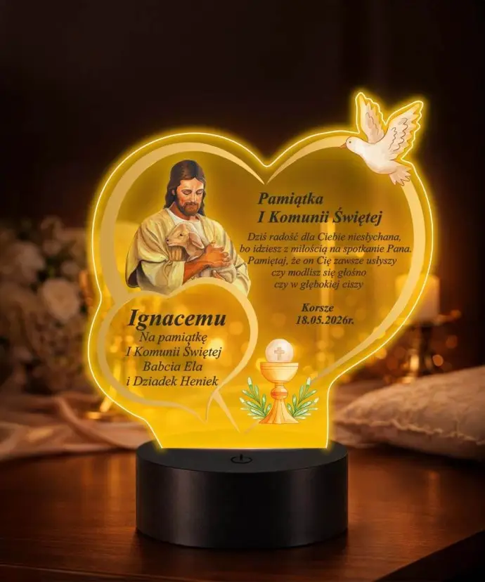Pamiątka Komunii Świętej Lampka LED Plexido Jezus