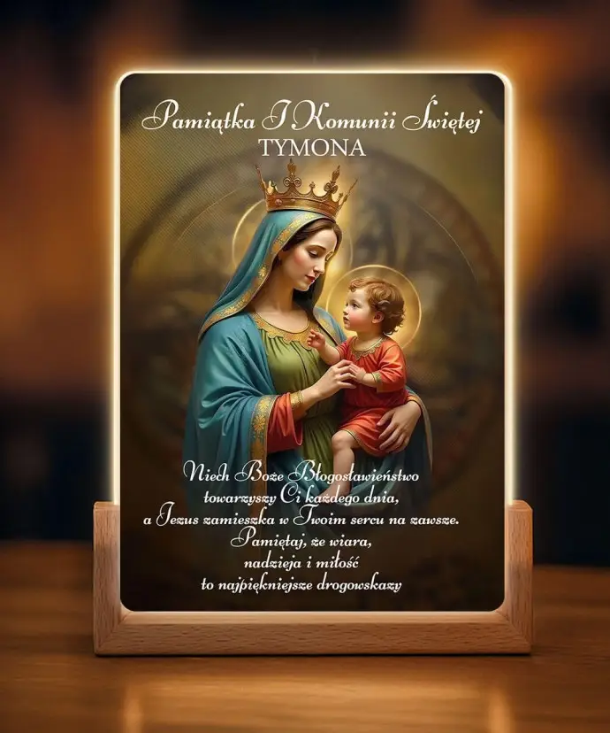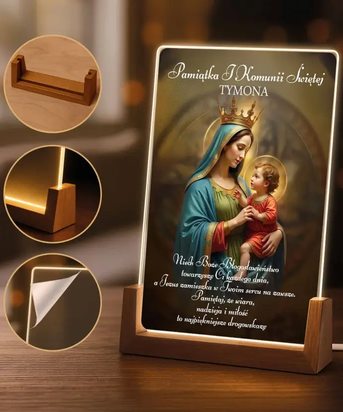 Pierwsza Komunia Święta Prezent Pamiątka Ramka LED Maryja