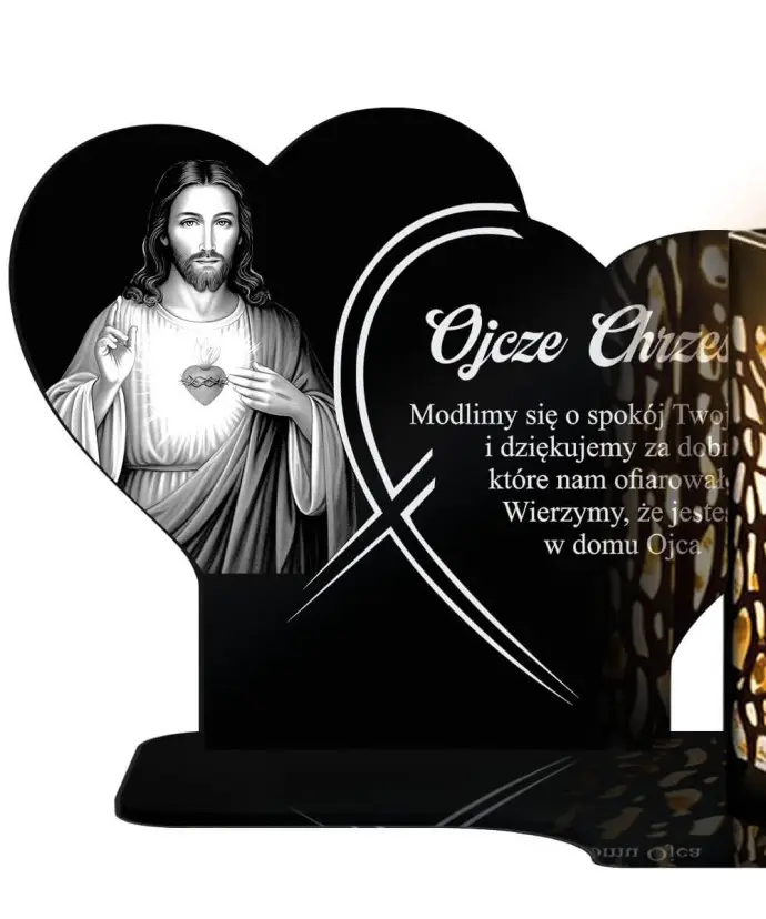 Znicz Solarny LED Statuetka z Jezusem Na Wszystkich Świętych Dla Taty Mamy